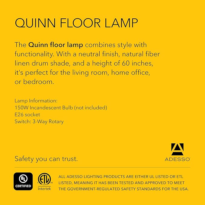 - Bulb Compatibility – Requires one, 3-way E26 medium base bulb, up to 150W incandescent or LED equivalent (not included). UL tested and approved to meet U.S. government-regulated safety standards for reliable, worry-free use.
