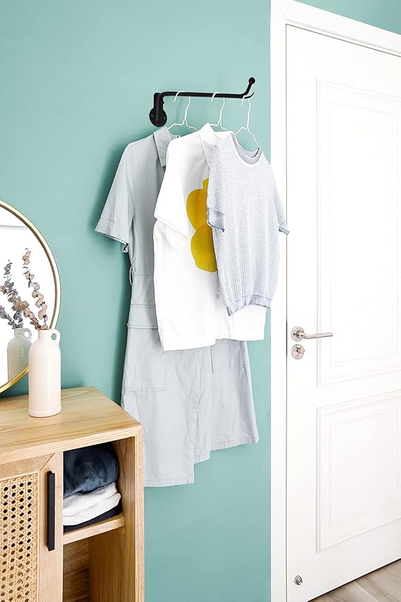 - Matte Black finish on the surface, compared to traditional clothing hanger, it adds modern and rustic flair to home decor. Multipurpose use for hanging coat, scarves, towel, bags, suits in bedroom, bathroom, laundry room or by the door. Place it in outdoor as a plant bracket for hanging flower pots, bird feeder and more.