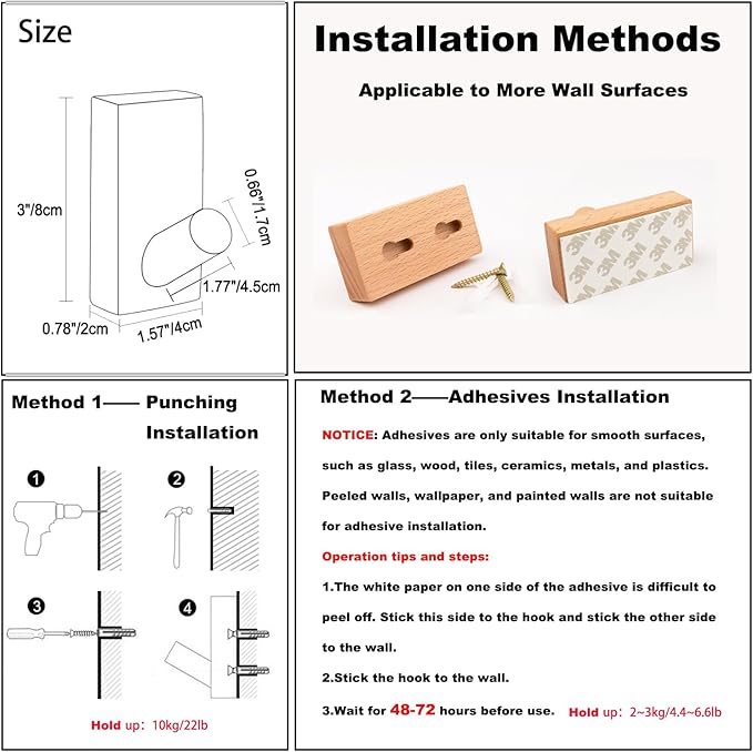 - 【EASY TO INSTALL AND STRONG】: Just drill a hole and insert a wall anchor and screw it. Hold up to 10~33lbs/2~15Kg, better hardware, sturdier and stronger.