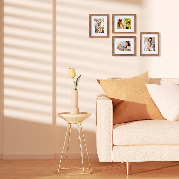 Egofine 8x10 Picture Frames 4 Pack, for Pictures 4x6 or 5x7 with Mat Made of Solid Wood Covered by Plexiglass for Table Top Display and Wall Mounting Photo Frames, Light Brown