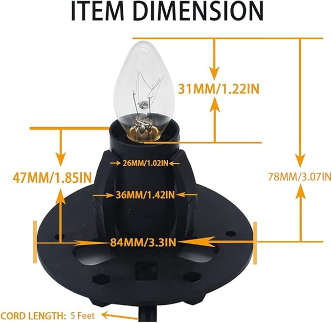 - 【2-Pack Salt Lamp Cord Replacement】 5-foot-long Original Cord comes with a handy dimmer switch, which can help you adjust the brightness of the lamp. Specifically designed for salt lamps to hold any 15~25 Watt E12 light bulbs.