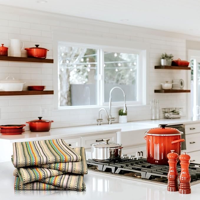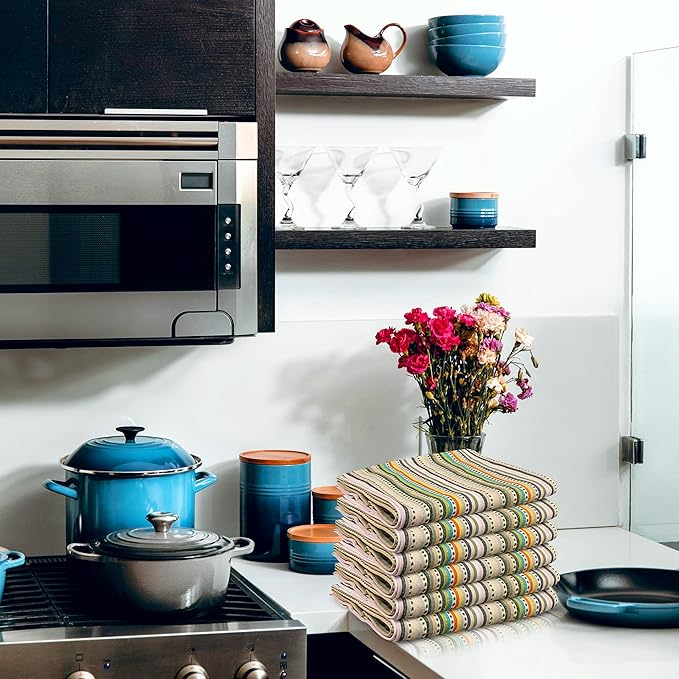 Urban Villa Easter Kitchen Towels,Beige Multi Dobby Stripes,Premium Quality,100% Cotton Dish Towels, Mitered Corners,Ultra Soft (Size: 20x30 Inches), Highly Absorbent Bar & Tea Towels (Set of 6)