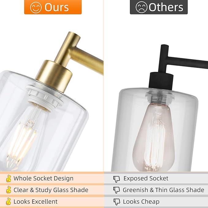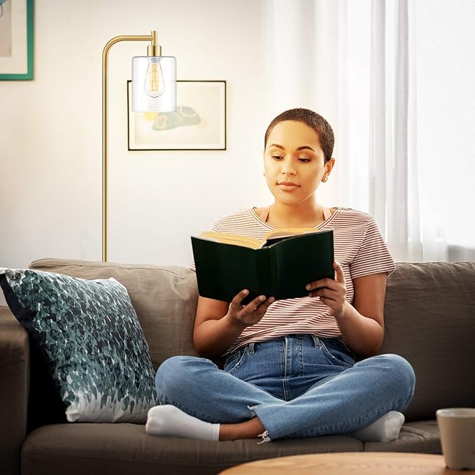 - 【Gorgeous Industrial Design Decorate Your Home】-With the simplify stylish design, this Industrial floor lamp can turn your home decor into an rustic, vintage and farmhouse atmosphere. Also, unlike other product with an very exposed socket and greenish glass shade which looks cheap, our floor lamp adopts whole socket design with high transparent sturdy glass shade, combined with flawless golden spray paint which make the lamp look gorgeous and expensive, add more elegant to your house.
