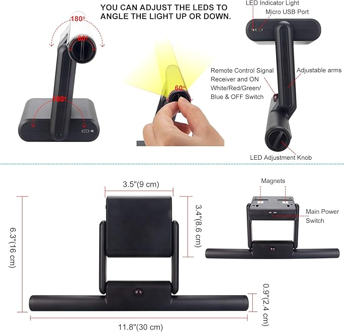 - ► [Adjustable Lighting Direction Painting Light]--The picture light tilt head can be rotated up and down 180°and you can even adjust the LEDs knob to angle the light up or down 60°to adjust the lighting direction to your desired position.