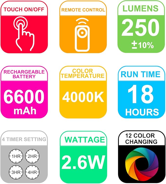 - ► [Remote Controlled with Timer&Dimmer]--Each remote can control the light at 20 feet distance max, and also can memorize the last brightness and color status when you turn on again by remote. Using the remote to control the brightness and preset the time at 1/2/3/4 Hours.