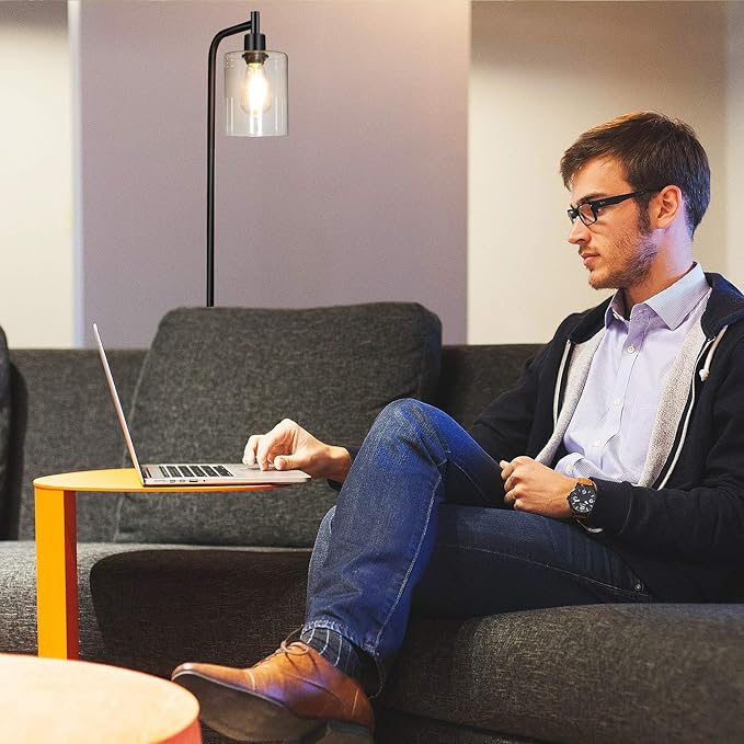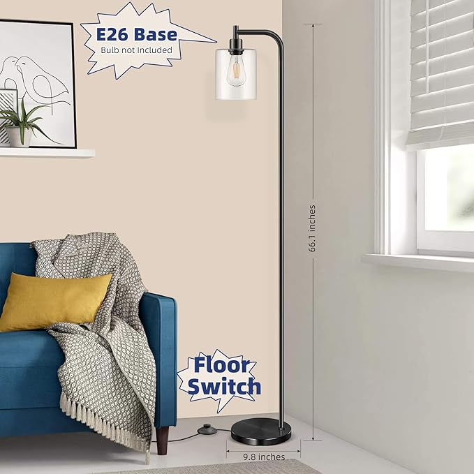 - 【Gorgeous Industrial Design Decorate Your Home】-With the simplify stylish design, this Industrial floor lamp can turn your home decor into an rustic, vintage and farmhouse atmosphere. Also, unlike other product with an very exposed socket and greenish glass shade which looks cheap, our floor lamp adopts whole socket design with high transparent sturdy glass shade, combined with flawless black spray paint which make the lamp look gorgeous and expensive, add more elegant to your house.