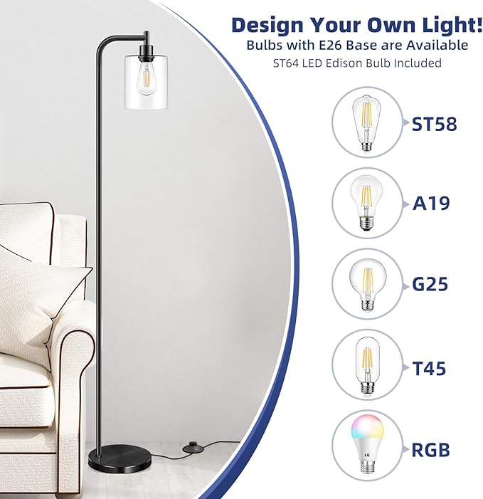 - 【Energy Saving LED Bulb Included】-For your largest convenience, there is an energy-saving Edison LED ST64 bulb included in the package, which will save your time and money from a second buy hazzle. This vintage bulb will be well-matched with this floor lamp from its appearance to function, not only beautifying the lamp’s look and adding more elegance to your room, but also create a comfortable and cozy atmosphere for your home by emitting gentle warm white light.