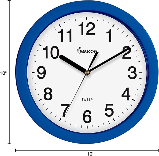 Impecca Silent Wall Clock Non Ticking 10 inch Excellent Accurate Sweep Movement Plastic Frame, Decorative for Kitchen, Living Room, Bedroom, Bathroom, Bedroom, Office, Blue