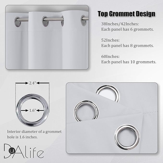 DUALIFE Greyish White Bedroom Curtains with Grommet 72 Inch Length White Curtains Panels for Kids Bedroom Thermal Insulated Room Darkening Window Drapes for Living Room 52x72 Inches Long,2 Panels