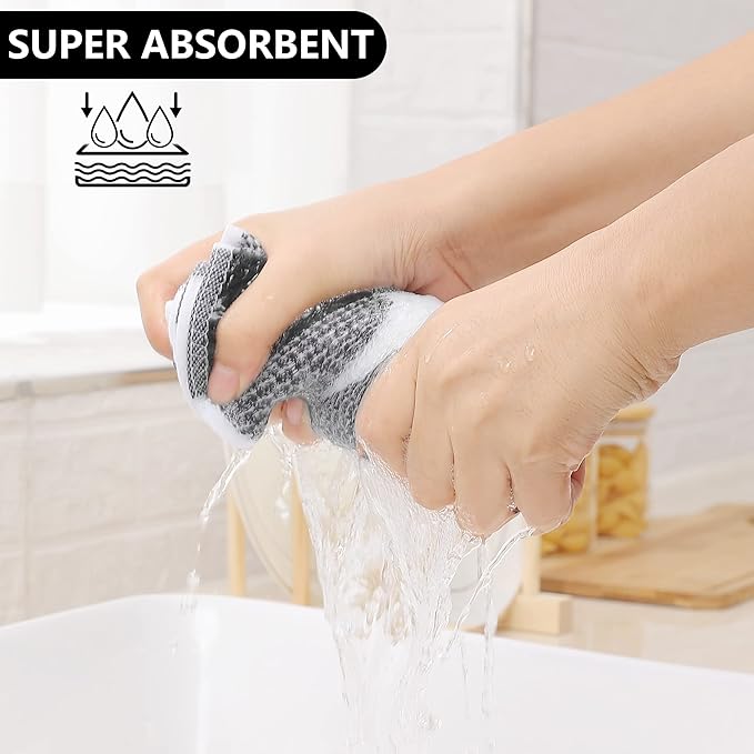 - ABSORBENT AND LOW LINT: Classic hollow honeycombs weave makes this set of dish cloths lightweight, breathable and super absorbent to tackle all of your drying and wiping without leaving streaks or fine fibers, No lint and No scratch. Fluffy and breathable features allow them to dry quickly without worrying about odors. With excellent sewing process, it can still keep good appearance after repeated washing, and is not easy to fade and shrink.