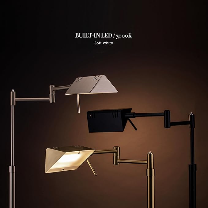 - 100% Made to Last - This swing floor lamp is 100% made of metal! Its metal lamp shade provides high efficient heat radiation and helps extend LED lifespan. Besides, the weighted metal base and strong tubes will firmly hold the standing light. You can smoothly swing the arms to move the light with confidence! This sturdy metal floor lamp not only represents durability and safety for daily use but its sleek vintage design brings an elegant retro fashion to your home decoration!