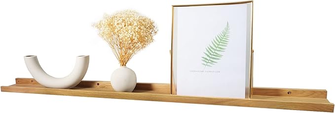 - ★100% NATURAL WOOD: Our wood floating shelf was made of North America FAS Grade Oak Wood. We insist on using 100% solid wood, no leather wood, and no artificial board. Our floating wood shelf for wall is much thicker than ordinary shelves, which are more durable. When properly install, this hanging shelf can safely hold up to 40 lbs weight items!