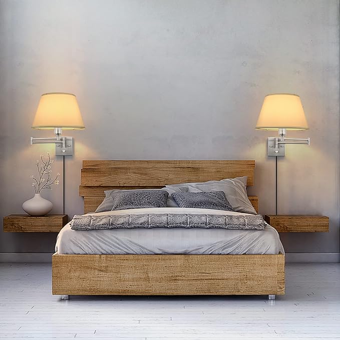 - Flexible Swing Arm Wall Sconce: Adjust swing arm from left and right 180 degrees freely, two arms can be adjusted horizontally 270 degrees, extend well, so you can freely adjust the angle of lighting to meet your lighting needs.