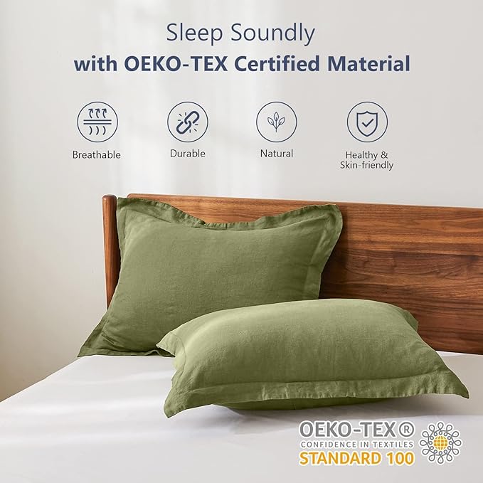 - 【Luxury Linen Fabric】The olive green overlap pillowcase is made of 100% natural linen, which is breathable, moisture-wicking and soft. Suitable for hot sleepers, create a soothing resting place and improve your sleep quality.