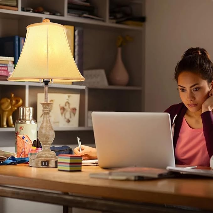 - 【Practical 2 USB Charging Ports&AC Outlet】Each bedside touch table lamp comes with two USB charging ports and an Electric plug-in, which are conveniently located on the base of the lamp. Great design to charge your phones and other electronic devices such as kindle, earphones, blue-tooth speaker, Ipad, ideal for an end table lamp. The convenient charing design makes the table lamp be a charing station in an extraordinary setting that takes care of all your charging demand on the spot.