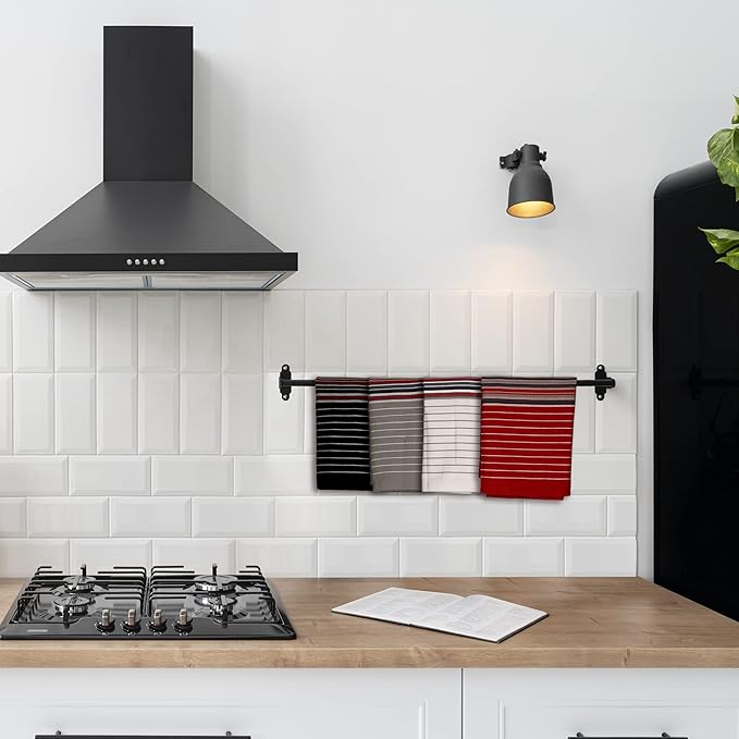 Urban Villa Kitchen Towels (20x30 Inches 12 Pack) Extra Large Premium Salsa Stripes Dish Towels for Kitchen Dish Cloths Highly Absorbent 100% Cotton Kitchen Hand Towels with Hanging Loop Tea Towels