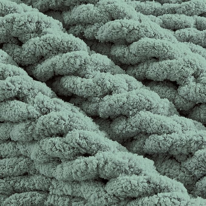 Carriediosa Chunky Knit Throw Blanket 50" X 60", 100% Hand Made Large Chenille Loop Yarn Soft Fluffy Throws for Couch Sofa Bed, Big Crochet Cozy Heavy Thick Cable Woven Blanket, Sage Green