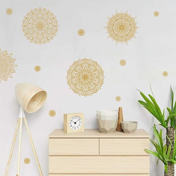 - 【UNIQUE MANDALA DESIGN】This Gold Mandala wall sticker has been carefully designed to be elegant and beautiful, and can be well matched with various styles of furniture and home decoration, such as modern style, vintage style, country style, cartoon style, etc, we have a variety of different colors, you can choose according to your own preference.