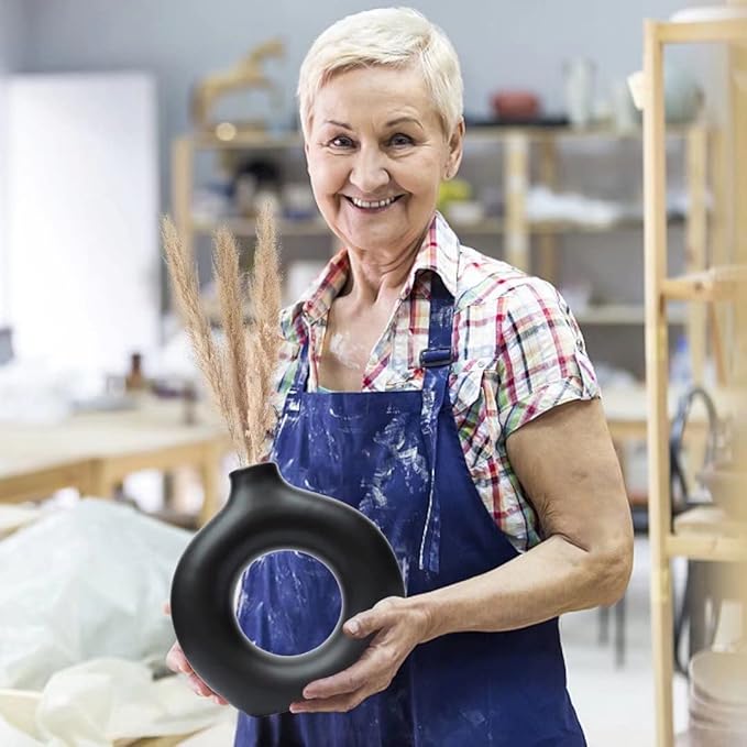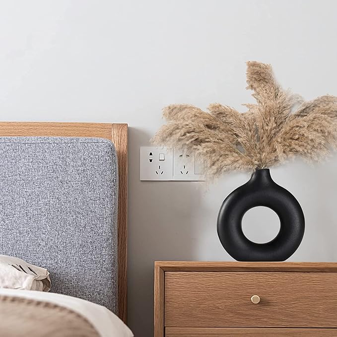- 🌷【UNIQUE MODERN DESIGN 】– If you are tired of those dull and boring designs, then you will definitely be attracted by these beautiful hollow design black ceramic vases for home décor. The donut design makes the flower vases unique and stylish; you can see through the hollow out while enjoying beautiful flowers in the vase, which adds more romance and fashion to your house.