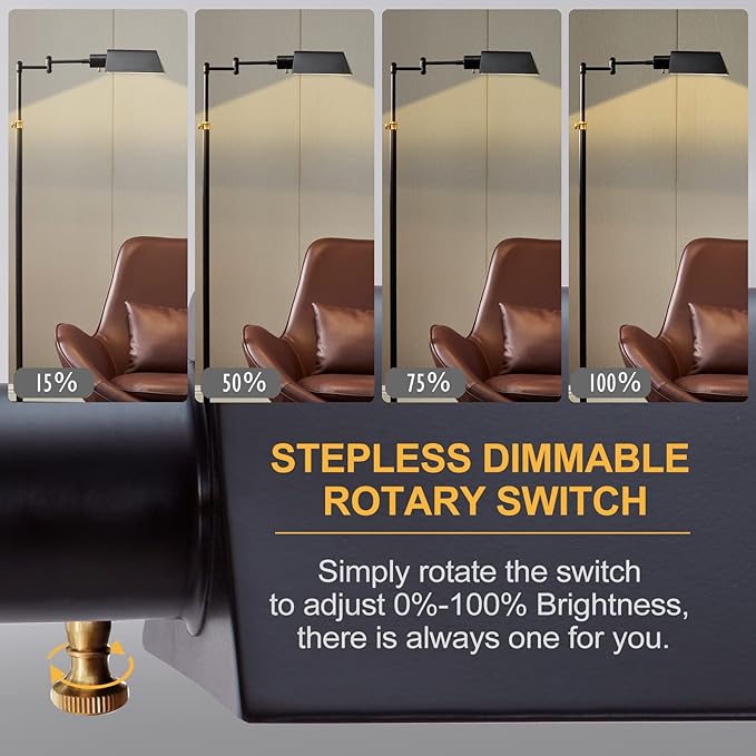 - Full Range Dimmable Floor Lamp: The LED floor lamp with full range dimming rotary switch to adjust the brightness, simply rotary the switch lightly to adjust the light to the brightness you need. The reading lamp can focus the light on a narrow area, it's perfect for precise and detail-oriented tasks, such as reading books, sewing, and taking up any other hobbies