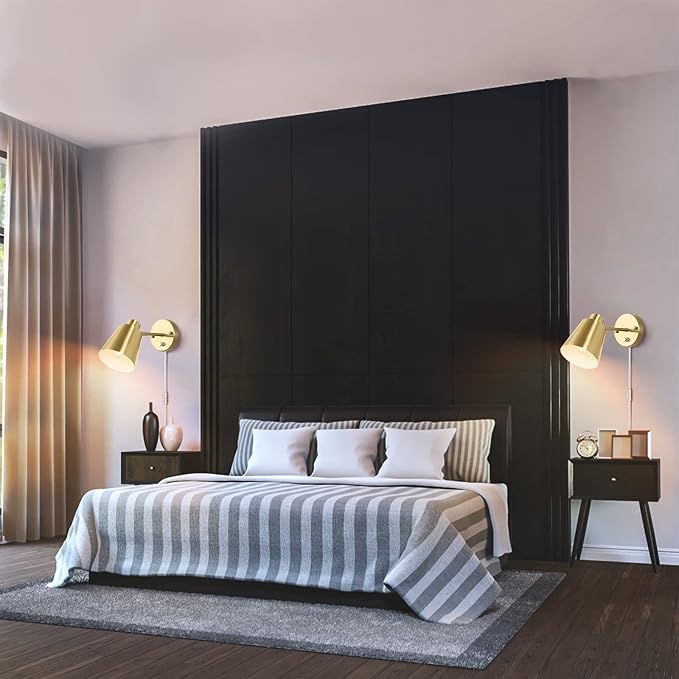 Plug in Wall Sconces, Dimmable Wall Sconces Adjustable Angle Wall Lights with Plug in Cord and Dimmer On/Off Knob Switch, Gold Wall Mounted Light for Bedroom Bedside Stairway(2 Pack, 2 Bulbs)