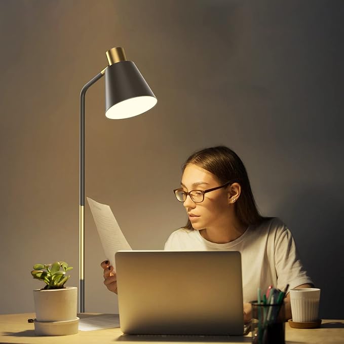 This light is perfect! It's nicely weighted for use on carpeting. It has a pretty gold finish. I needed bright direct light for doing things such as nail clipping or reading a book. It can be dimmed. And the warmth of the color can be changed. I'm so impressed with my purchase and the price was in line for the product. Oh! And easy to assemble! The whole light is a no brainer!
