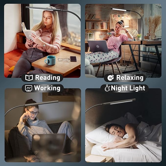 - ❤[Flexible Gooseneck, Compatible with Smart Plug] -- This lightweight lamp features an easy to maneuver, omni-flex gooseneck that provides unrestricted positioning and never droops automatically. Flexible neck has durable and silicone coated wire sheath construction. Compatible with wall switches and smart plugs. The light will be on/off instantly when you control the light via wall switch or smart plug