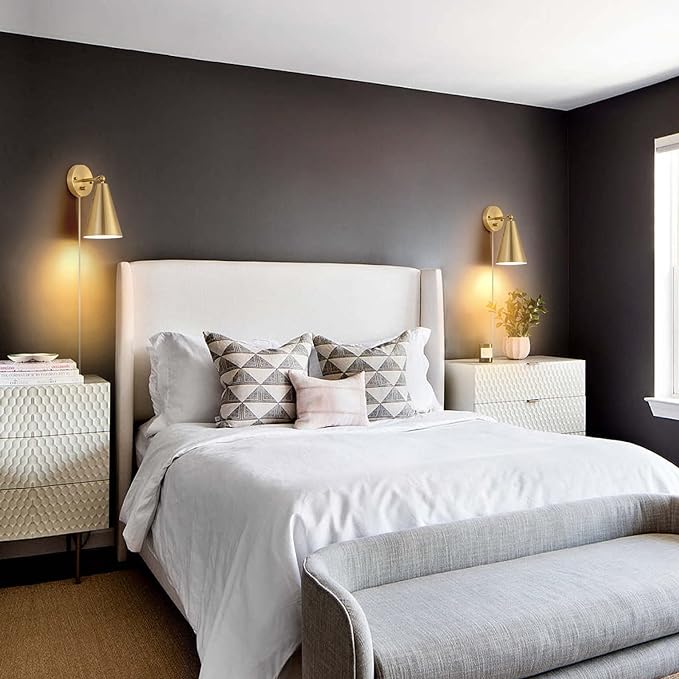 - Fully Dimmable Wall Sconces Plug in:The brushed brass finish sconces wall lighting designed with a dimmer on/off switch on the backplate, just rotate it to turn on/off light and adjust lamp to your preference brightness level 0-100%