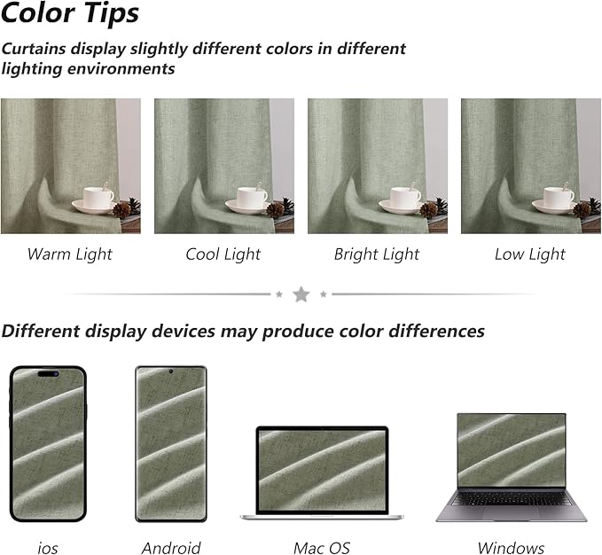 - Privacy Semi Sheer: More than basic semi sheer drapes, these weave blend density linen curtains let in some beautiful diffused light, yet reduce energy usage, only the hazy shadows of the indoor can be seen, provide you with better privacy protection, let you enjoy a safe and comfortable space.