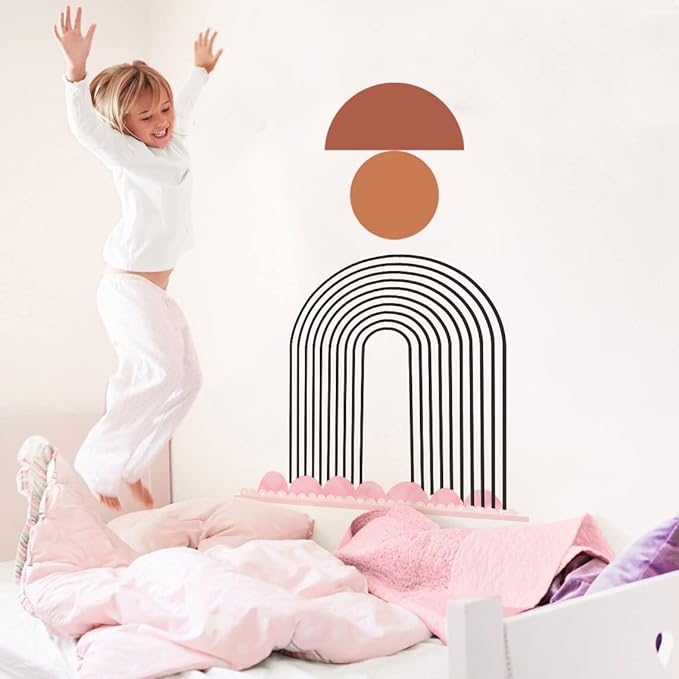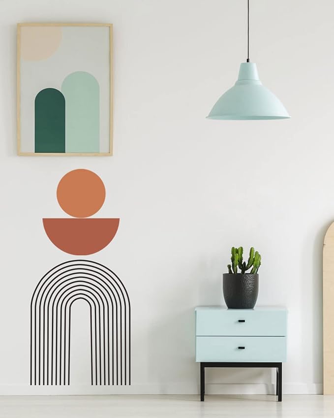 - Vinyl wall decal is one of the latest and greatest trends in home decoration. Really nice and simple peel and stick! The wall decals give the illusion of painted wall art, without mess, cost, or time. You can display your creativity and freely arrange the decal positions. The combos of arch, circle and semicircle decor add a great artistic atmosphere to the room!