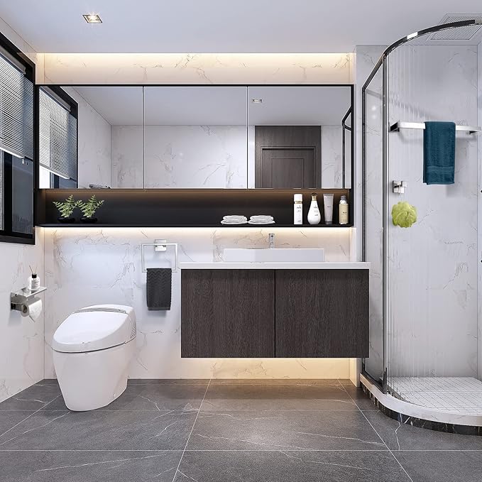 - 【Best Value】-The 4-piece bathroom hardware set provides easy access and display of towels, robe and toilet paper for your bathroom. Keep your bathroom clean and tidy!