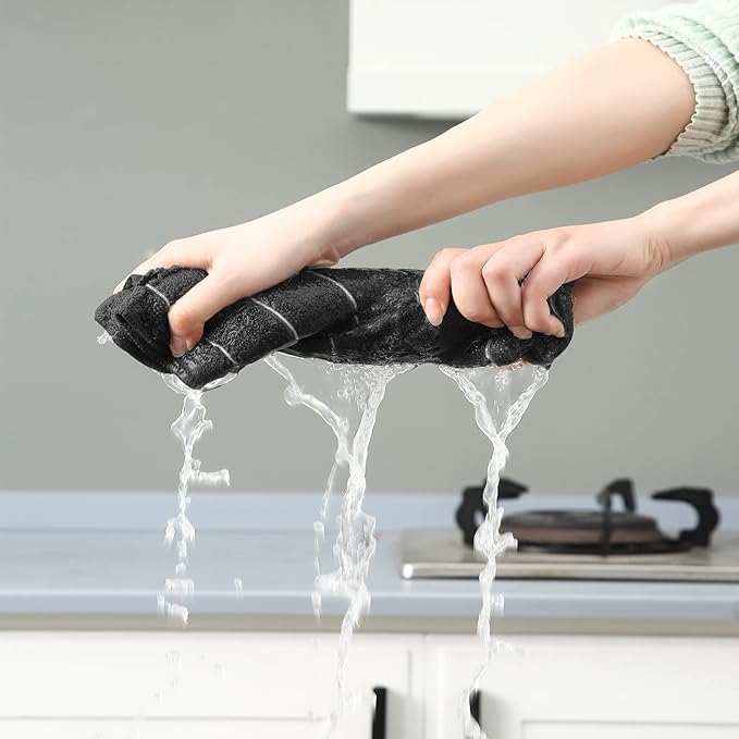 Microfiber Kitchen Towels and Dishcloths Set, 26 X 18 Inch and 12 X 12 Inch, Set of 12 Bulk Lint Free Dish Towels for Drying Dishes, Black
