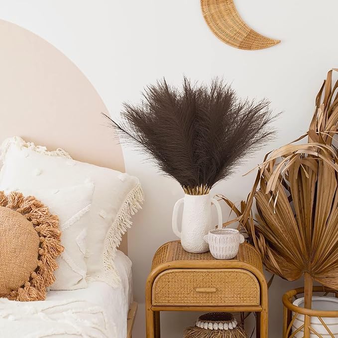 - Pampas Grass Decor: You will get a pack of 50pcs artificial pampass grass, each stem 21.6”, and the heads of each stem is designed you can fluff them up for a fuller look, create a chic minimalist, or Bohemian modern display to complement your existing home arrangement