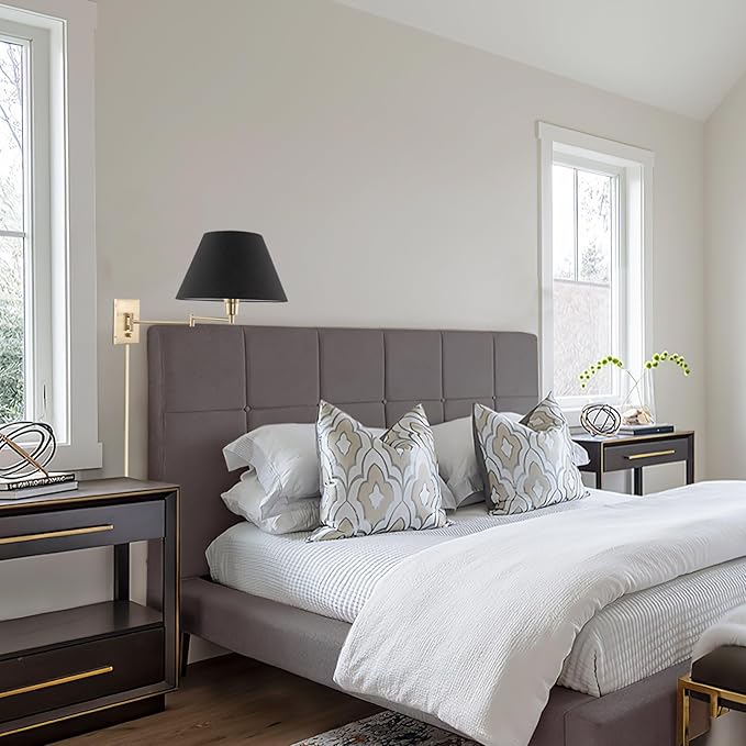 - [FITS MANY DECOR STYLES WITH UNMATCHED WARRANTY] This modern wall light fixture with cool brass / gold swing arm and black fabric shade complements all decor styles from traditional and contemporary, to farmhouse and minimalist designs. Enjoy peace of mind with our 5-year warranty, guaranteeing your complete satisfaction