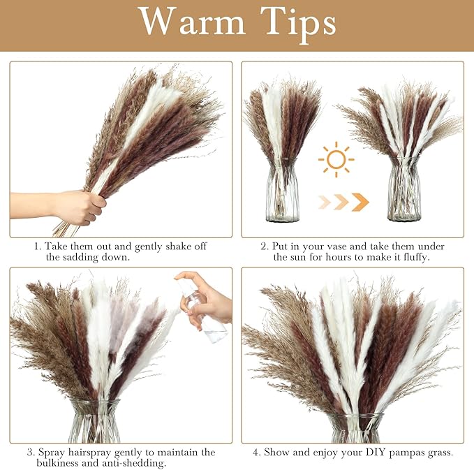 - Simple and Elegant: the natural pompous grass is mixed, you can DIY different grass bouquets according to your own ideas, or match with other dried flowers, which will show different effects, can also show your distinctive and elegant taste