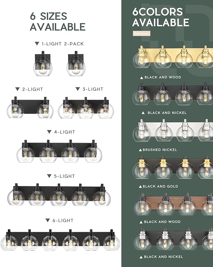 - 【INSPIRED DESIGN】3-light bathroom wall sconces is made of sturdy metal in the matte black finish and clear glass globe shade which blends perfectly with modern minimalist home decor. The wall mount light design allows for this sconce to be installed in an upwards or downwards position.