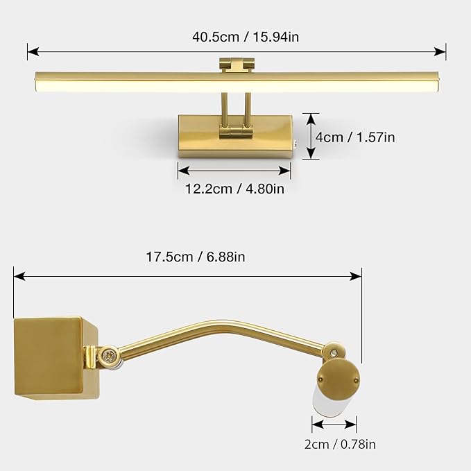 - Adjustable Painting Lights - The picture light’s arm(16 inches) can be rotated 150°and 300°to adjust the lighting direction to your desired position.