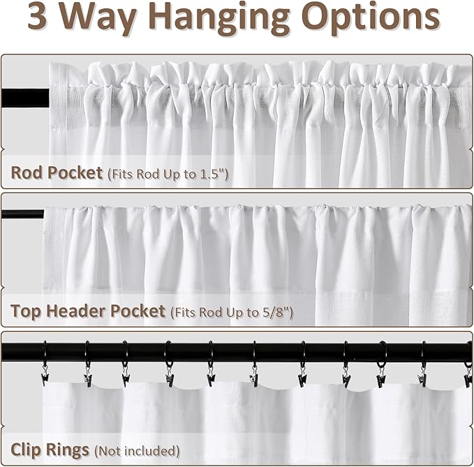 - Light Filtering & Airy: Beautifully frames your windows with a soft and hazy vision. Linen textured curtain draperies don't completely block the sunlight but gently filtering out harsh sunlight. The open weave lets in plenty of fresh air when you have the curtains closed but window open