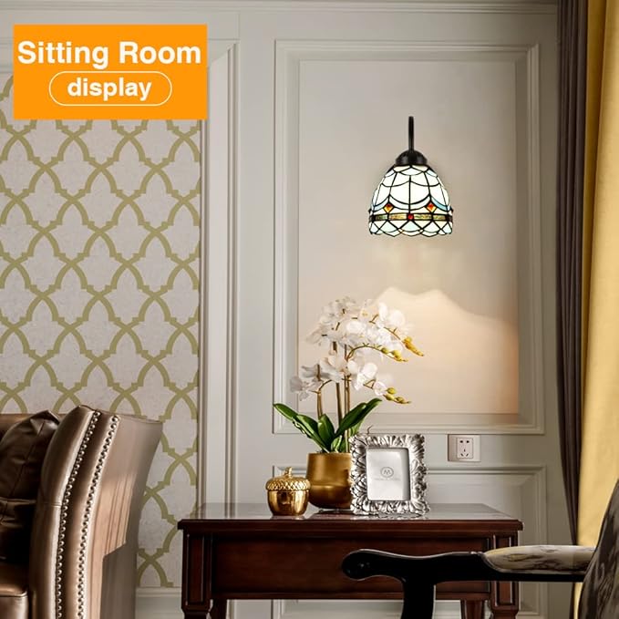 - PARAMETER&PURPOSE :Tiffany wall lamp with 4.9ft silver plug and E26 lamp holder, MAX40W (Bulbs Not Included). Distinctive tiffany classic look perfect for Bedroom, Living Room.