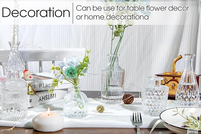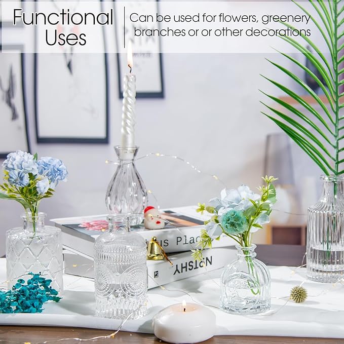 - 【 Wonderful Gift 】 Create a romantic and cozy atmosphere easily by combining a few different design small clear vases for centerpieces together. Have it for your own or send it as a gift on Anniversaries, Birthdays, Weddings, Housewarmings, Thanksgiving,Christmas New Year to create beautiful memories.