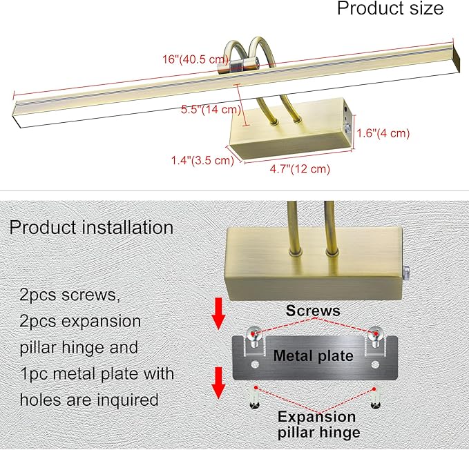 - 16 inches Metal Painting Light - Full metal body, elegant S shape arms, perfect for dart board,artworks,picture frame, portrait,gallery,mirror,photo,computer, etc. (Any questions please feel free to contact us, we will reply to you within 24 hours.)