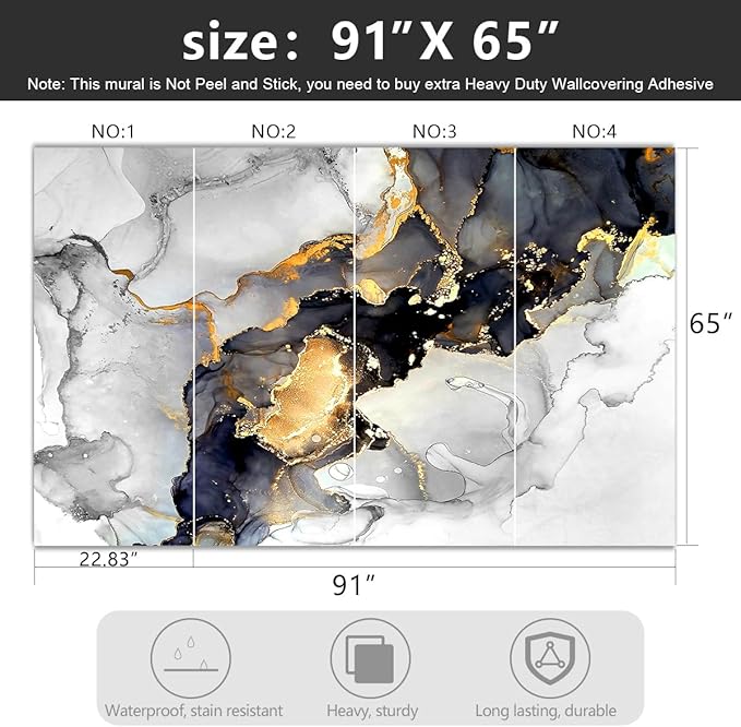 - 💕wallpaper size : 91"x65" divided into 22.83"x65"x4 sections