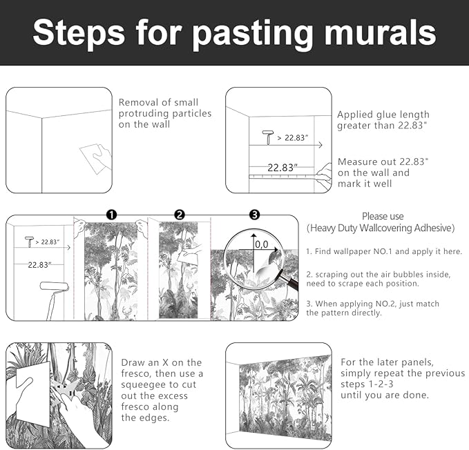 - 💕Wallpaper installation can refer to our main picture, the package will also be placed inside the installation instructions.