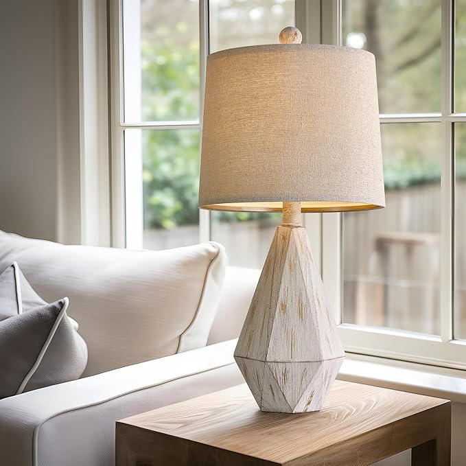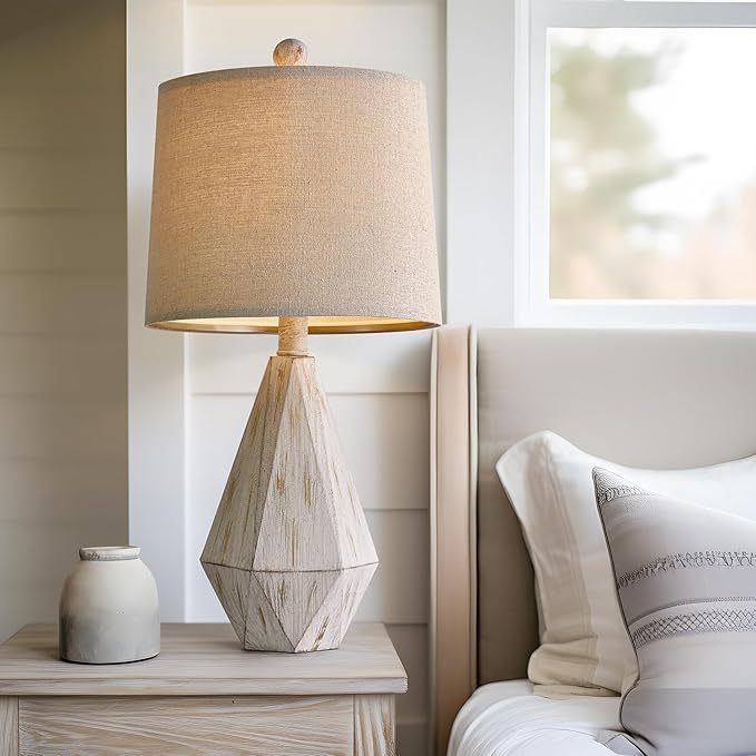 - Farmhouse Elegant Design: Enjoy nostalgia with this exquisitely designed table lamps for living room, featuring a vintage farmhouse style with irregular diamond-shaped resin bases in a WASHED WHITE wood grain finish. The timeless charm of these lamps for bedroom adds a touch of elegance to any space.