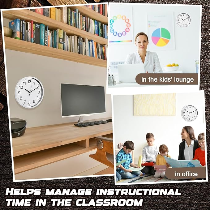 Inbagi 8 Pcs Wall Clock Large Silent Battery Operated Wall Clocks Modern Non Ticking Wall Clocks Bulk Decorative for Kitchen Office Living Room Home Bathroom Bedroom Classroom(White,10 Inch)