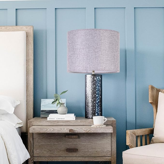 Wellmet 16"x16"x12" Assembly Required Lampshade for Table Lamp, Bedside Lamp, Floor Lamp, Fabric Drum Lampshade Classic Modern Style, Spider Fitter, Grey