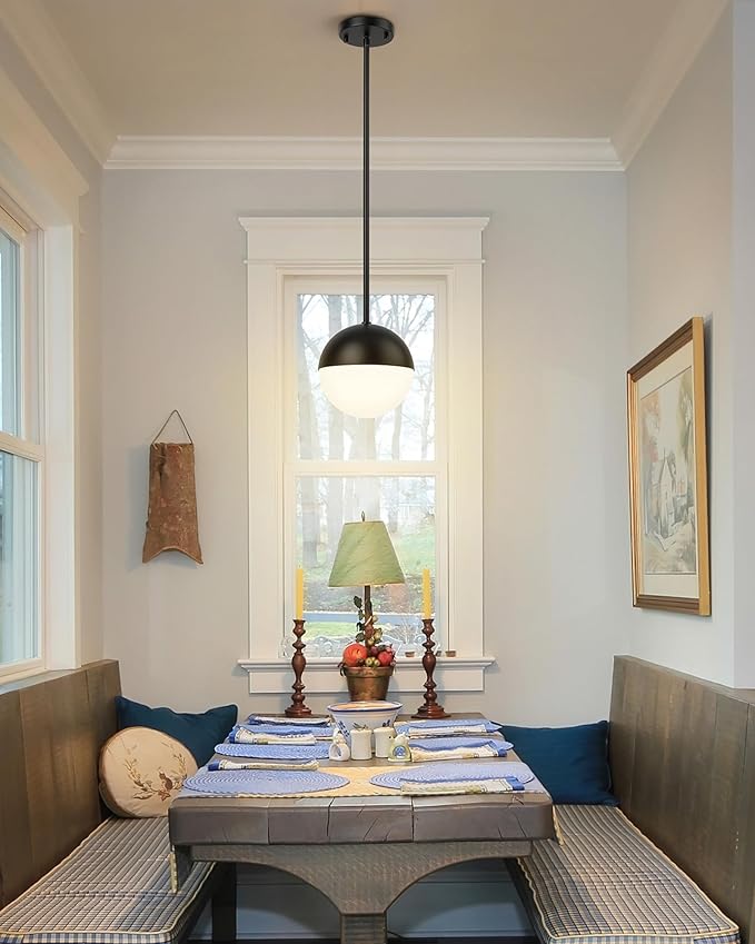 - Modern Style Glass Globe Pendant Light: The black pendant lights kitchen island are matte black finish featured with high-quality metal and smooth white frosted glass shade to meet your taste, which add warmth to your kitchen island, living room, bedroom, dining room, etc