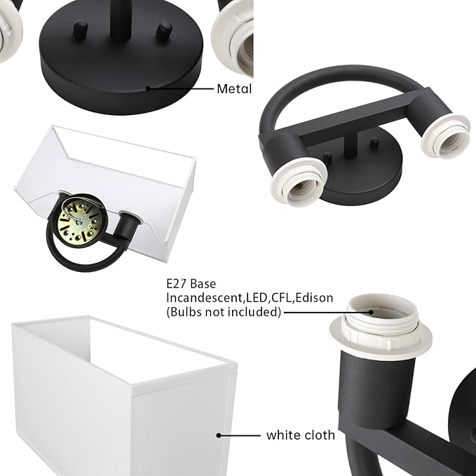 - Design: Simple design with a classic vintage looking. 2-Lights retro wall sconces lighting comes in a metal lamp body with a white fabric lampshade. Premium materials and handmade crafts, make each one truly special. The sconce fixture will be a perfect art decoration for your modern or retro space