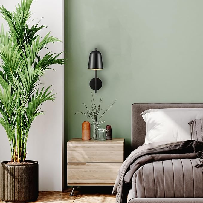 GLOBE Electric 65000049 1-Light Plug-in or Hardwire Wall Sconce, Matte Black, Pivoting Shade, Black Braided Fabric Designer Cord, Hanging Lamp, Wall Lights for Living Room, Bedroom, Den