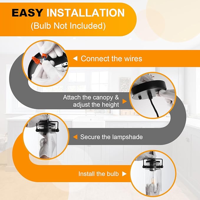 - 【No Assembly Required】No need to assemble, the pendant light is already assembled, just need to connect the wires correctly to the positive/negative pole, and install the bulb, For safety, please ensure electrical box for that specific fixture is off during installation
